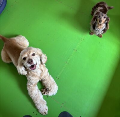 ペットホテルリピーターのアメリカンコッカースパニエルのドルちゃんとミニチュアダックスフンドのマリンちゃんです🐶